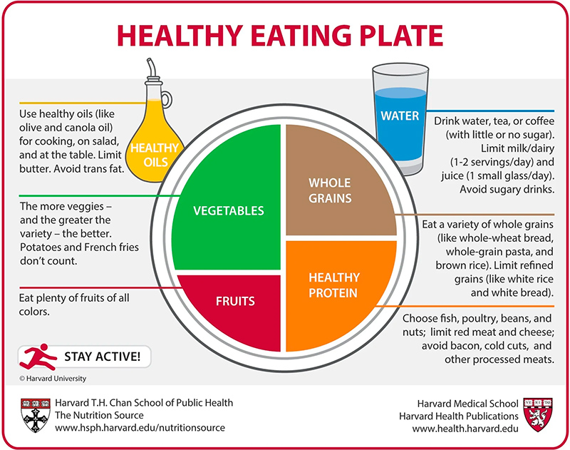 В 2011 году Министерство сельского хозяйства США представило новую программу под названием MyPlate (моя тарелка). Эта тарелка разделена на четыре квадранта разного размера, где половину пространства занимают овощи и фрукты, а вторую половину - злаки и белки. Порции овощей и злаков - самые большие из четырех.