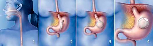 Пациенту сначала делают гастроскопию, чтобы выявить заболевания, при которых баллон использовать нельзя, после чего вводят ему в желудок пустой баллон, свернутый в трубку. После этого баллон заполняют водой объемом 500 мл. Отсоединяют трубку от баллона - и все, процесс закончен.