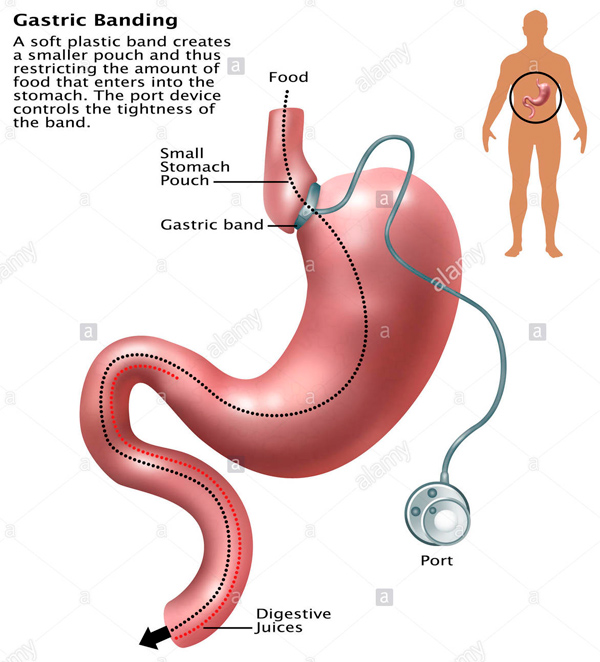 Более продвинутый способ, который обычно показан людям с более высоким ИМТ (от 40 до 50), - это бандажирование желудка или, как я его называю, метод дырочки в правом боку. Посвистывать этой дырочкой нельзя, но тем не менее.