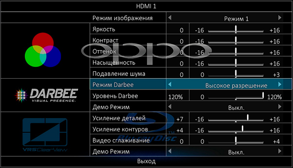 Обработка Darbee Visual, как я уже говорил, доступна только для выхода HDMI1.