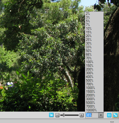 Специальным слайдером или с помощью выпадающего меню, расположенного справа снизу, можно менять масштаб просматриваемой картинки. Также там есть две иконки: реальный размер, подогнать под экран.