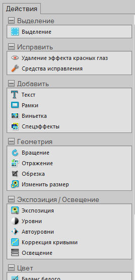 Панель инструментов редактирования теперь напоминает ACDSee Photo Editor - удобные сворачиваемые-разворачиваемые группы инструментов, расположенные вертикально.