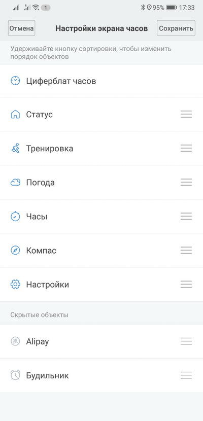 Приложения на часах. Alipay актуально только для Китая, а вот будильник можно подключить.