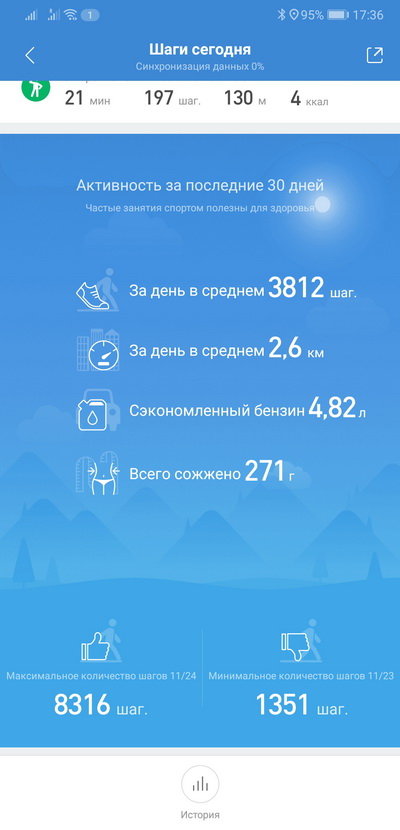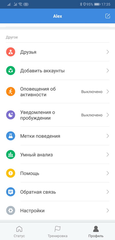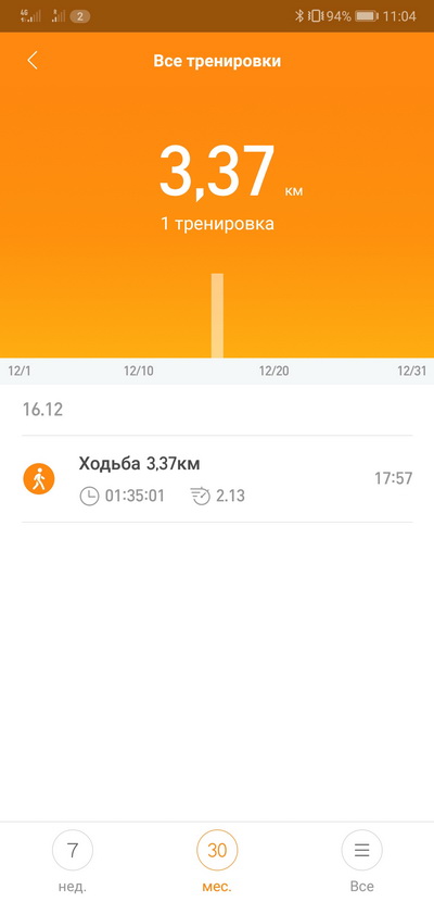 Вот и вся функциональность. На мой взгляд, ее вполне достаточно для повседневной активности человека, который также занимается спортом на уровне прогулок, пробежек, велосипеда или беговой дорожки.