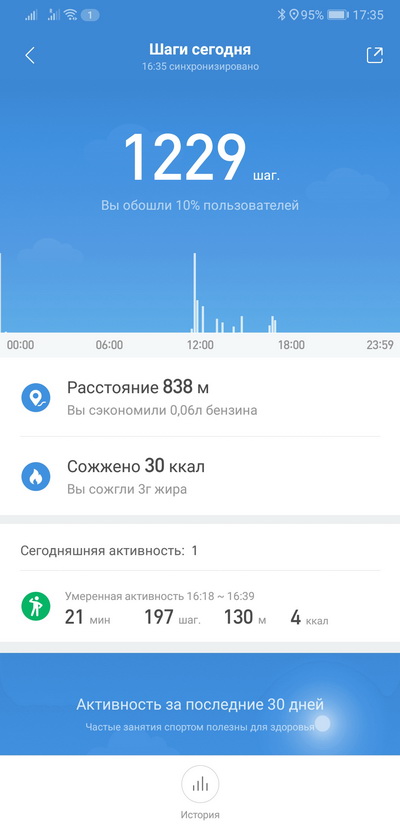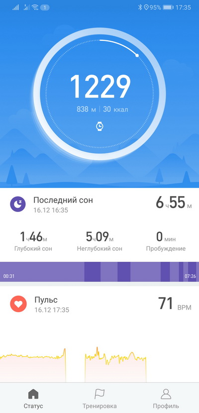 А теперь давайте посмотрим, как все эти данные демонстрируются в программе Mi Fit.
