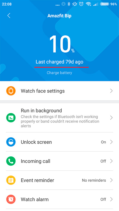 Если эти часы использовать в режиме: счетчик шагов, отслеживание сна,  подсветка на минимальном уровне и не активируется жестом, экономный скин (без секунд), то часы способны проработать от одного заряда больше трех месяцев. Не шутка. Читатель Павел использует часы в таком режиме - и вот посмотрите на скриншот. 79 суток и еще 10 процентов заряда. Будет больше трех месяцев.