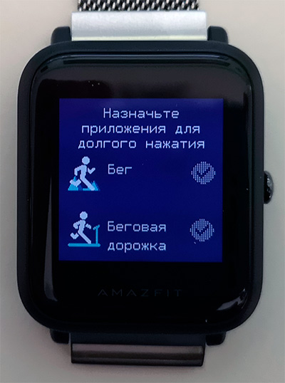 На длинное нажатие можно назначить конкретную спортивную программу.