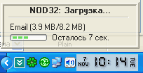 После первого запуска антивирус сообщит, что его вирусные базы сильно устарели и нуждаются в обновлении через Интернет. Вы можете щелкнуть мышью по разделу «Обновление» и далее нажать кнопку «Обновить сейчас», однако можно этого и не делать, потому что по умолчанию NOD32 настроен так, что он автоматически соединится со своим сервером и скачает все необходимые обновления. Следует иметь в виду, что при первом запуске антивирусу понадобится скачать немаленький объем информации – порядка семи мегабайт, и на диалапе это займет довольно продолжительное время. Процесс обновления будет отражаться в соответствующем окне: