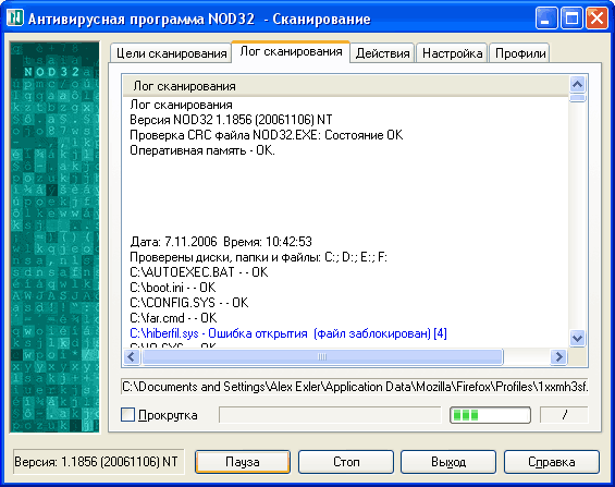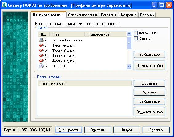 2. Запуск NOD32. Запуск сканера с возможностью выбора объектов для сканирования.