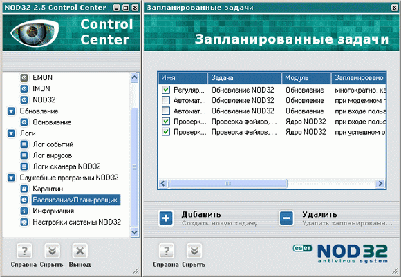 Как и «Антивирус Касперского 6.0», NOD32 предоставляет пользователям целый ряд инструментов для защиты компьютера: