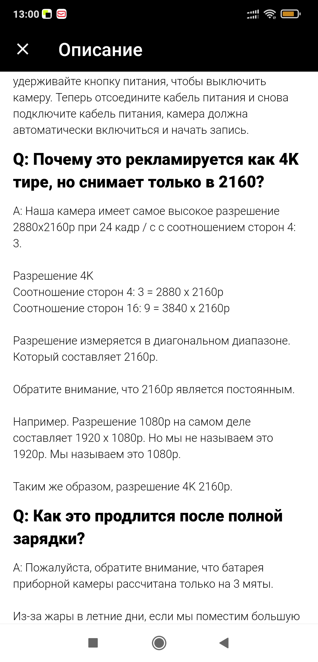 Ну и отмечу, что здесь все-таки слегка урезанное разрешение 4К - не 3840x2160, а 2880x2160 (а точнее, разрешение 2688x1520 - это физическое разрешение данной матрицы, которое слегка экстраполируется до 2880x2160). Вот у Xiaomi 70mai A800 - честное 4К. Но он в два раза дороже.