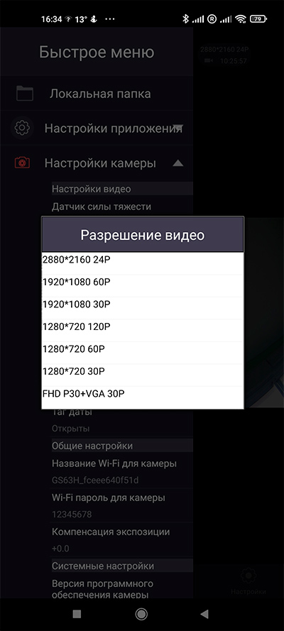 Разрешение: 2880x2160 24fps, 1920x1080P 60fps, 1920x1080 30fps, 1280x720 120fps, 1280x720 60fps, 1280x720 30fps,