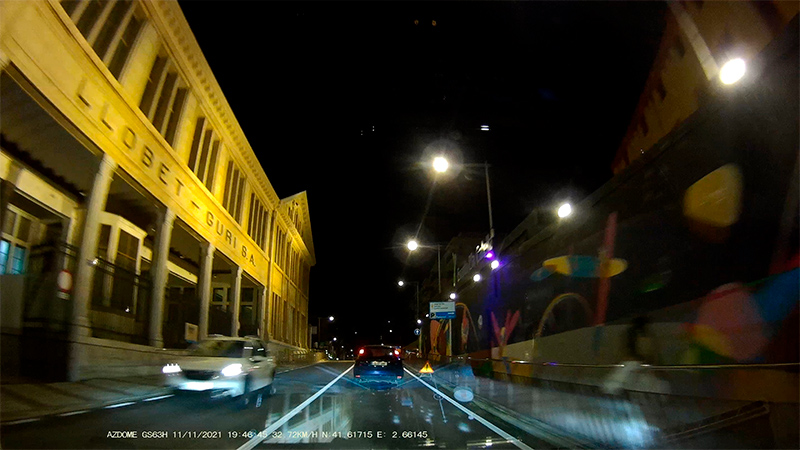 Хотелось бы увидеть, как он снимает ночью при свете одних только фар -- без внешнего освещения. Типичный случай загородной ночной поездки.