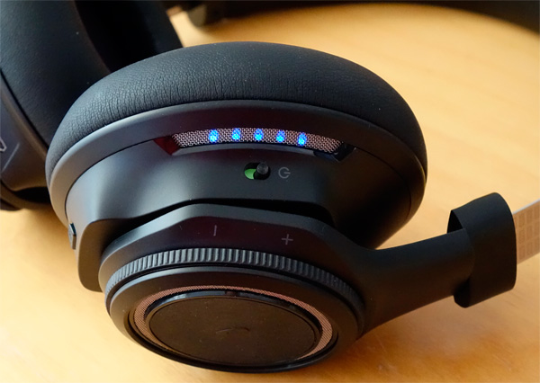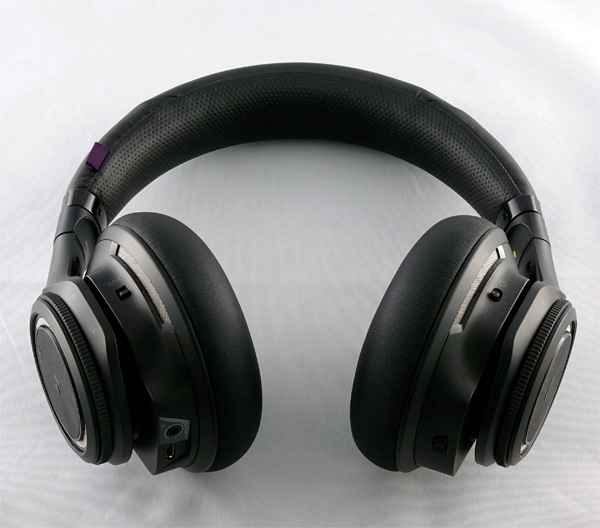 Также мне очень понравилось то, что для управления наушниками используются кнопки, переключатели и зубчатые колесики, - это удобно. А то были у меня наушники Parrot Zik, где по новомодной манере все управление делалось с помощью жестов пальцами по внешней поверхности амбушюр - это, конечно, было очень круто, но предельно неудобно: я бы предпочел, чтобы вместо этого были обычные кнопки. И в компании Plantronics с этим пожеланием согласны: тут не требуется делать никаких жестов, есть переключатели, кнопки и зубчатые колесики.