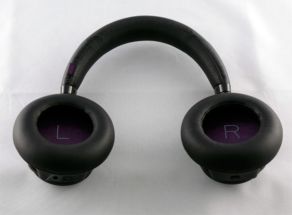 Динамики амбушюр покрыты фиолетовой тканью, и там написаны крупные буквы L и R - для левой и правой чашкек.