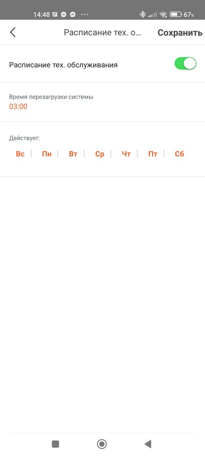 Настройка техобслуживания - перезагрузка системы по расписанию. Очень странная настройка: у нормальной системы все должно работать без перезагрузок.