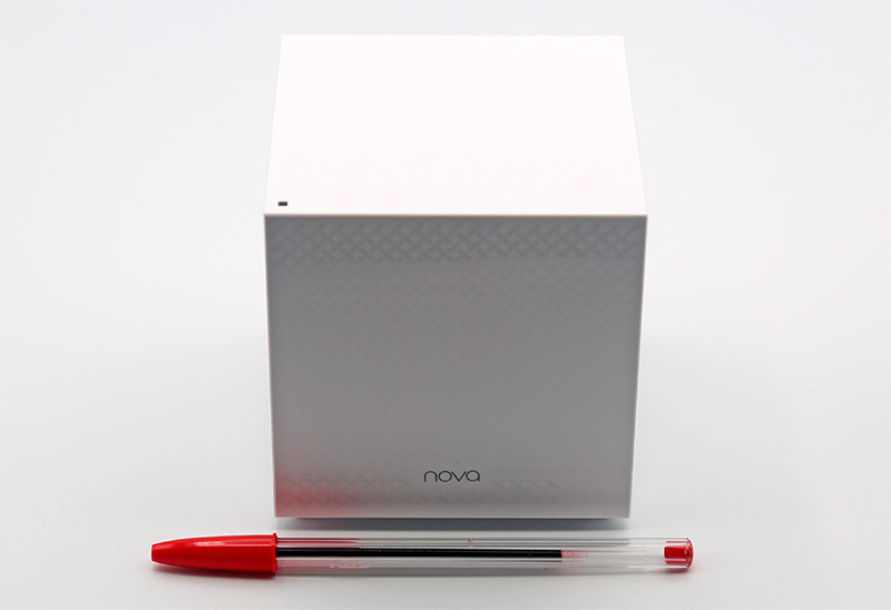 Каждый роутер - куб белого цвета с гранями размером в 10 см. Слева сверху у куба - светодиод, сигнализирующий о состоянии устройства и уровне сигнала.