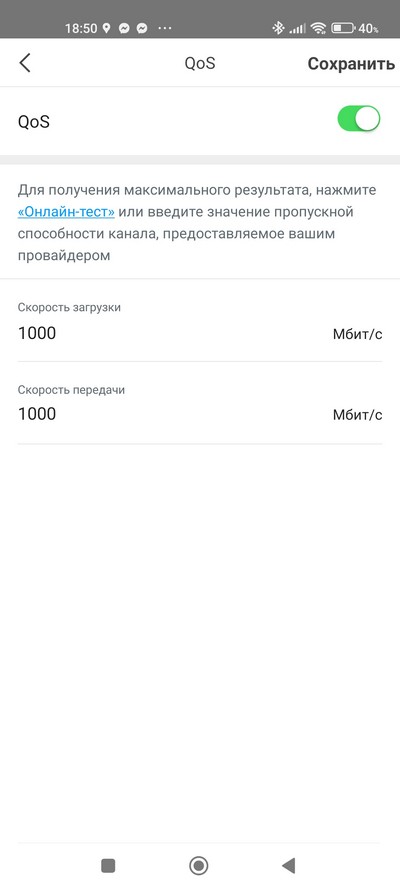 Включение режима QoS для оптимизации пропускной способности канала (приоритет игрового трафика).