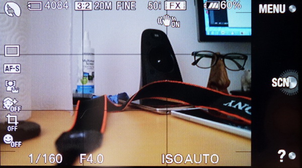 За видоискатель, с одной стороны, типа как спасибо (его лишены и NEX-3N, и NEX-5N), но когда попереключаешь его в ручном режиме неудобной кнопкой и посмотришь на качество (201 тысяча точек) - сразу тянет сказать: "Спасибо, не надо", потому что такой видоискатель мало для чего пригоден.