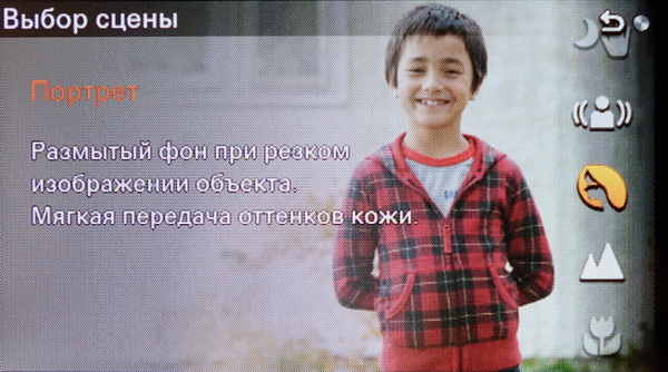 В режиме "Сцена" конкретную сцену можно выбирать с помощью нажатия центральной кнопки селектора и колеса селектора.