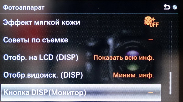 Меню здесь типовое NEX-овое: не слишком хорошо организованное и конкретно неудобное.