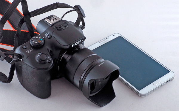A3000 - совсем небольшой и легкий: вот рядом с ним смартфон Galaxy Note 3.