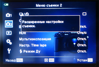 Надо сказать, что, по сравнению с E-M5, у E-M1 заметно удобнее элементы управления: как по размеру (у E-M5 некоторые элементы были безобразно маленькие), так и по разнообразию настроек.