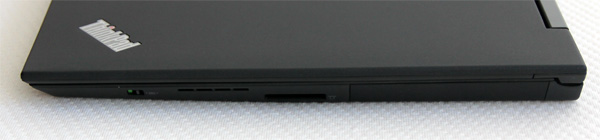 Правый торец - кнопка включения-выключения беспроводной связи, кардридер. Далее идет заглушка с крепежом - под ней посадочное место второго жесткого диска.