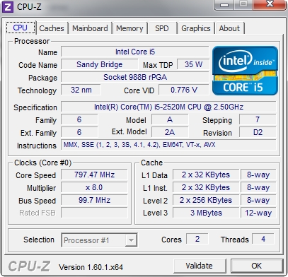 Процессор: Intel Core i5-2410M (2,3 ГГц)