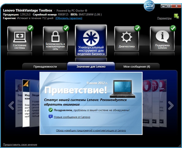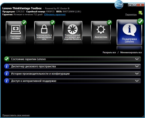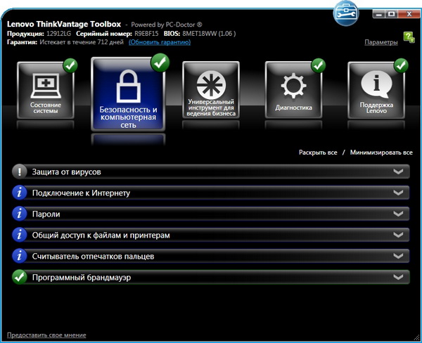 Набор всяких фирменных системных сервисов. Этот комплект вызывается из отдельной системной панели и аж отдельной кнопкой - вот до чего тут все важное, по мнению Lenovo.