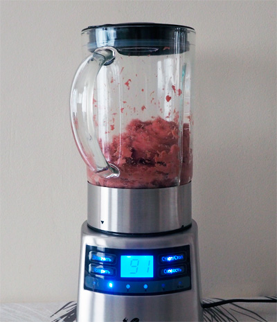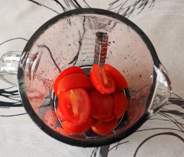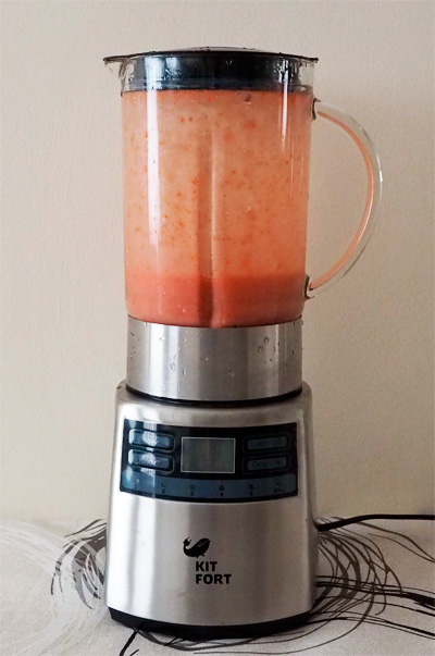 Да, очень важный момент: блендер не работает с объемами менее 250 мл (или граммов)! Поэтому сделать фреш из, например, двух небольших помидоров не получится, помидоров должно быть не менее 250-300 граммов. То же, разумеется, относится и к любым другим продуктам.