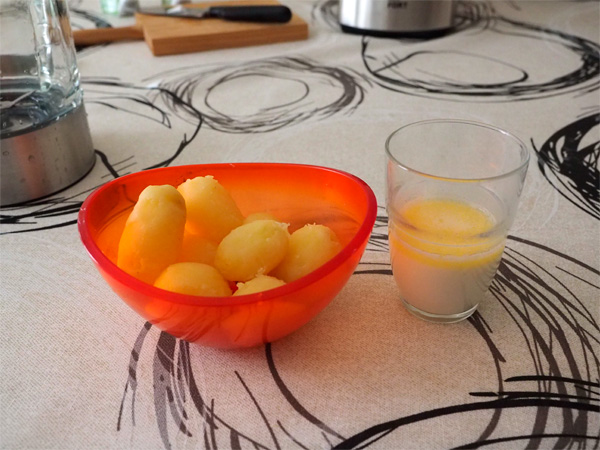 Но я проводил эксперимент - поэтому попробовал: очищенный вареный картофель, молоко, масло.