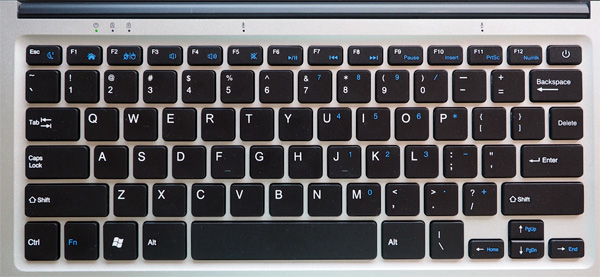 Раскладка клавиатуры - достаточно удобная. Над клавиатурой находятся три световых индикатора и два микрофона (не очень понятно зачем).
