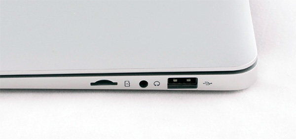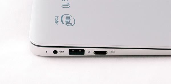 Левый торец: порт адаптера питания, второй порт USB 2.0, miniHDMI.