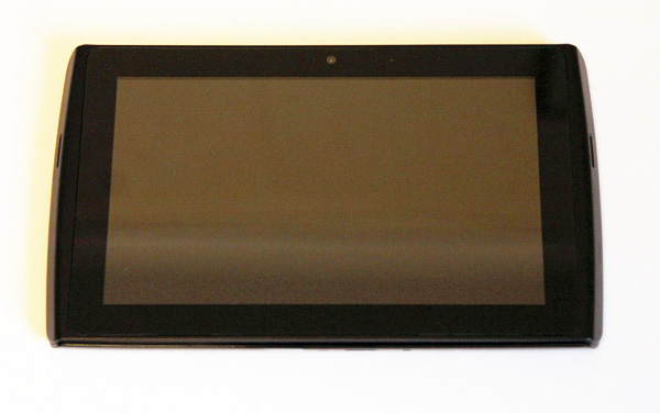 Внешне планшет выглядит совершенно обычно, разве что обращают на себя внимание чуть выпирающие книзу левый и правый торцы, отделанные матовым пластиком.