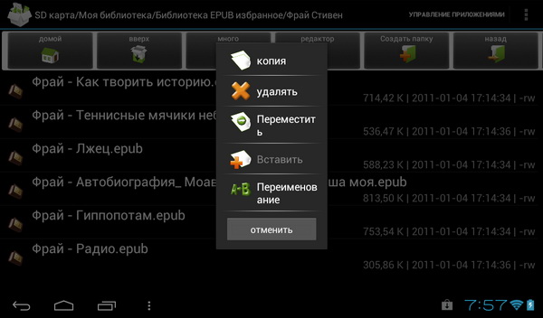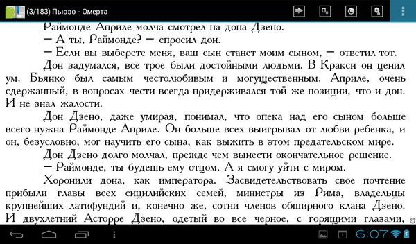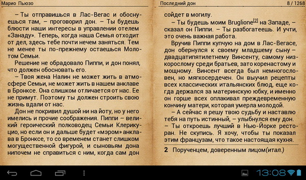 Ридеров поставили аж три - CoolReader, EBookDroid, FBReader. Но, на мой взгляд, лучше CoolReader нет ничего - он тут работает, как полагается.