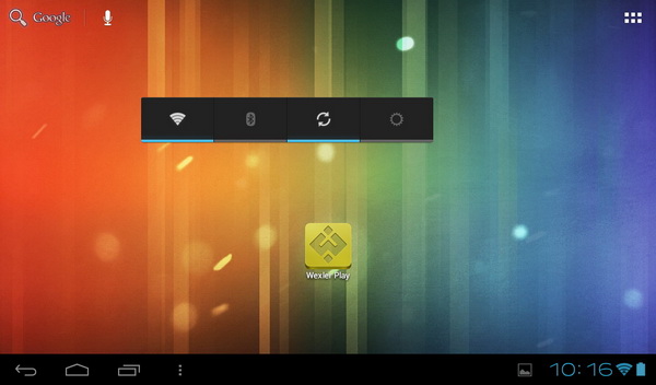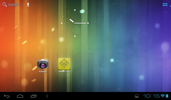 На момент обзора здесь был установлен Android 4.0.4. Причем без каких-либо изысков. (Оно и понятно.) Оболочка - стандартная, андроидная. Главный десктоп выглядит следующим образом.