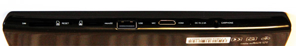 Нижний торец (в портретном режиме) - слот для обычной miniSIM-карты, Reset, слот для microSD, USB 2.0, микрофон, выход miniHDMI, выход адаптера питания, выход наушников.