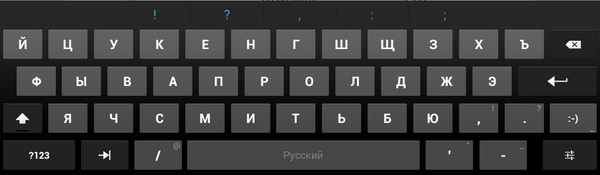 Клавиатура - обычная андроидная, то есть неудобная. Причем, как и у Huawei MediaPad, при явно выставленных двух языках клавиатура категорически отказывалась переключать раскладку по пробелу, хотя на нем появлялось название раскладки. Похоже, что это глюк именно четвертой версии.