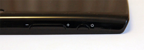 Верхний торец - кнопка питания и качелька регулировки звука. Не особенно удобно сделано, особенно кнопка питания, но привыкнуть можно.