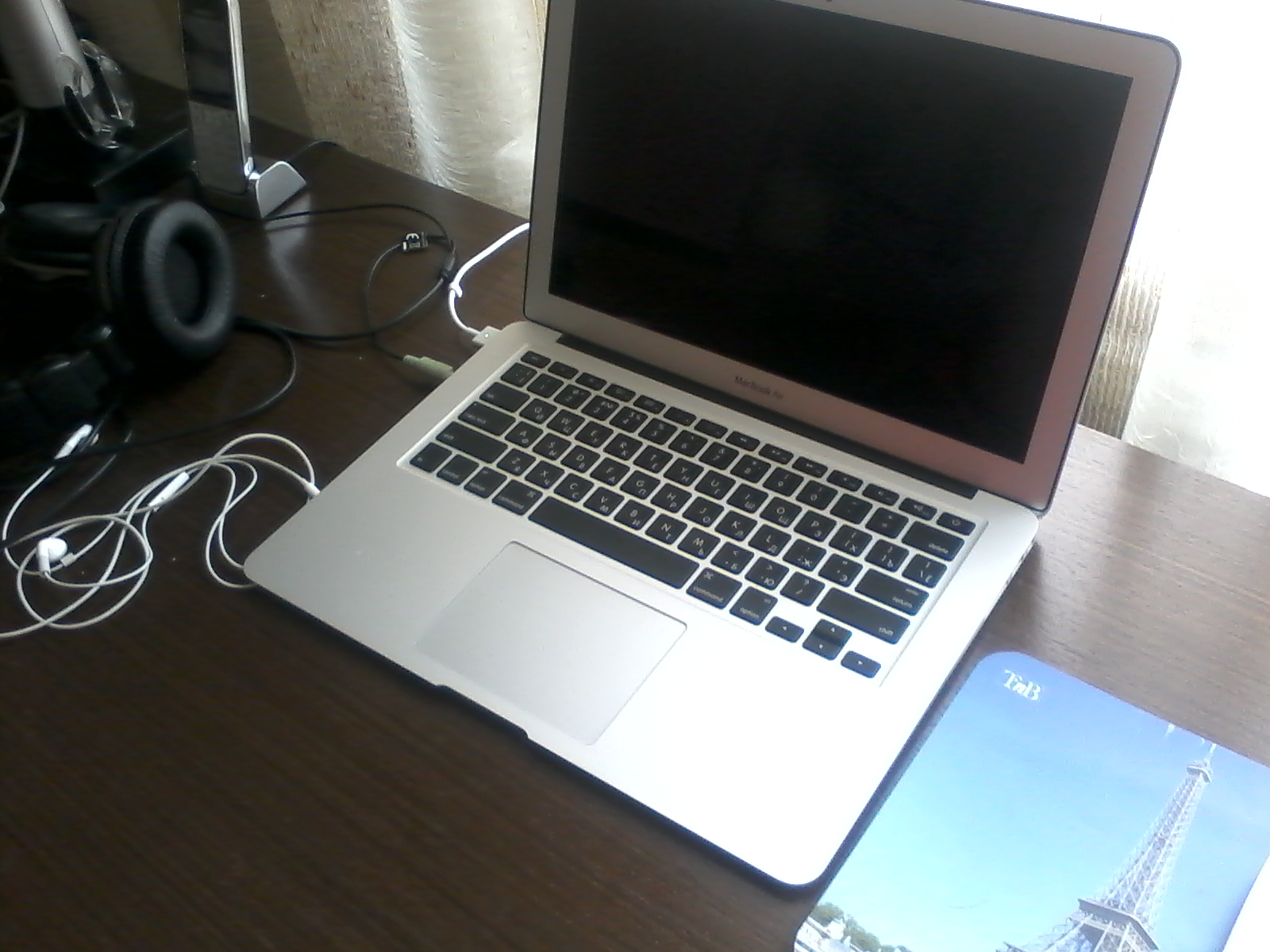 Это ж как Бублика расплющило! (фото№4, между Макбуком и вазой с цветами).