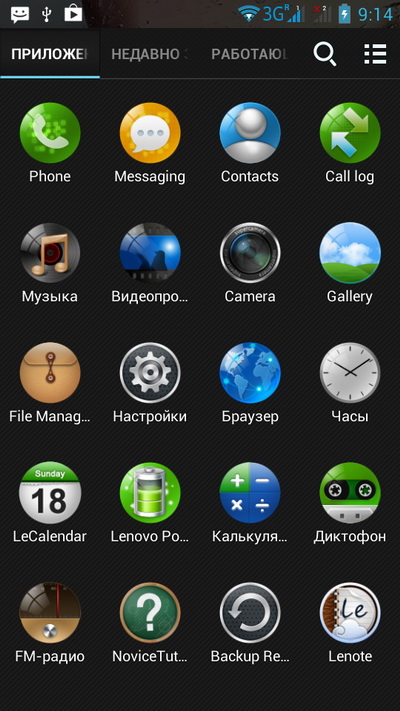 Здесь установлена собственная оболочка Lenovo, также переработаны некоторые приложения и сделан свой комплект иконок.