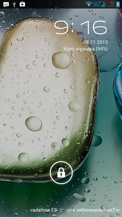 Окно блокировки. При нажатии на пиктограмму появляются специальные значки: выход в Google Now, запуск камеры, просто разблокировка. На окно блокировки выводятся сообщения о пропущенных звонках и пришедших сообщениях.