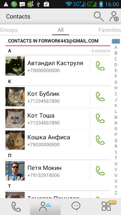 Список контактов.