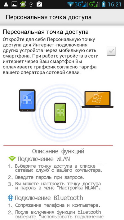 Персональная точка доступа - несколько расширенные возможности по сравнению со стандартной андроидной.