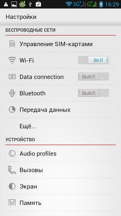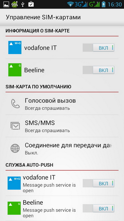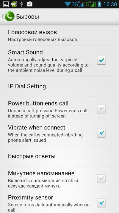 Ну и посмотрим, что там интересного в настройках. Кроме стандартных, есть куча дополнительных настроек - по двум сим-картам и всему остальному.