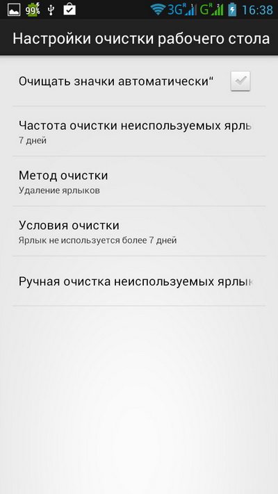 И есть еще опция очистки рабочего стола - интересная возможность.