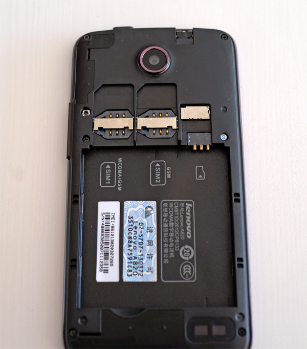 Под задней крышкой - два слота под miniSIM и слот под карту microSD.