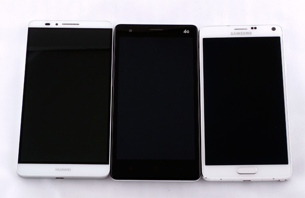 Ну и вот наш герой рядом с Huawei Ascend Mate 7 и Samsung Galaxy Note 4. Смотрится неплохо, не так ли?