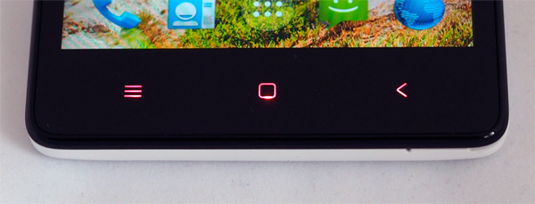 Управление осуществляется с помощью трех сенсорных кнопок, расположенных под экраном, - это "Меню", "Домой" и "Возврат".
